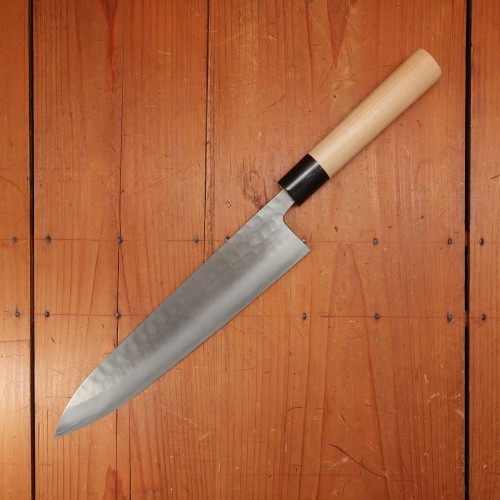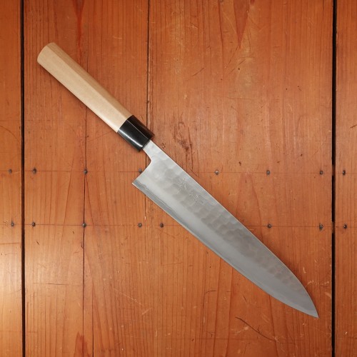 Consider the general rules of a Japanese knife for use applications; boneless proteins, vegetables and most fruits (some fruit dont play as nicely with carbon steel, I’m looking at you mango). Avoid bones, frozen food, twisting on the board during cutting and general dumb stuff. No dishwasher use.