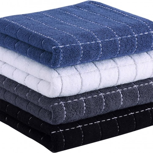 - 100% COMBED COTTON. Extra soft pre-washed, yarn-dyed cotton with finished stitched hems. Made of highly absorbent soft cotton that makes them great for drying dishes and glassware and cleaning up spills around the kitchen