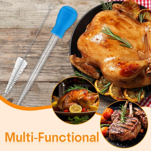 Boao 14 Pcs Heat-resistant Turkey Baster Cooking Set Includes 8 Pcs 11 Inch Turkey Baster, 2 Silicone Basting Brush, 4 Cleaning Brush for Thanksgiving Cooking, BBQ Grill, Baking Meat(Vibrant Color)
