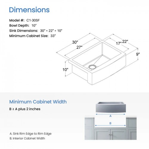 - 10″ Deep Bowl: With a generous 10″ depth, the sink provides ample space for dishes and large items, reducing splashing and containing water within the sink area for a more efficient and enjoyable washing experience | 3.5″ Drain Opening: The sink is designed with a 3.5″ drain opening, which is compatible with any standard garbage disposal unit.