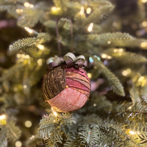 Handmade Christmas ornament by local fabric artist, Laura Smith, using a pattern from The Ornament Girl.