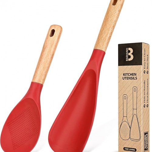 Cooking Spoon and Rice Scooper for Nonstick Cookwares, Great for Cooking and Serving Sturdy BPA-Free Matte Silicone, Wood Handle Spoon for Mixing, Scoop, and Scrape (ORANGE)