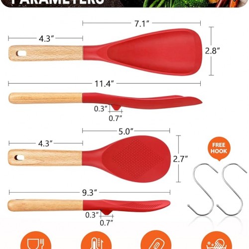Cooking Spoon and Rice Scooper for Nonstick Cookwares, Great for Cooking and Serving Sturdy BPA-Free Matte Silicone, Wood Handle Spoon for Mixing, Scoop, and Scrape (ORANGE)