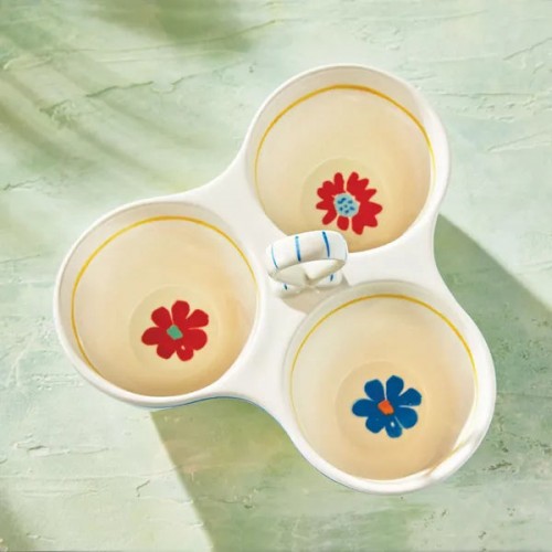 Elevate your entertaining with the Dolce Vita 3 Part Dish, a stunning addition to your dinnerware collection. This organically shaped earthenware serving plate features exquisite hand-painted designs that bring La Dolce Vita style to your table. Perfect for serving appetizers, condiments, or desserts, its generous 5.25″H x 7.25″L x 8.25″W dimensions make it as practical as it is beautiful. Whether as a thoughtful gift or a treat for yourself, this versatile piece will transform ordinary gatherings into memorable occasions.
