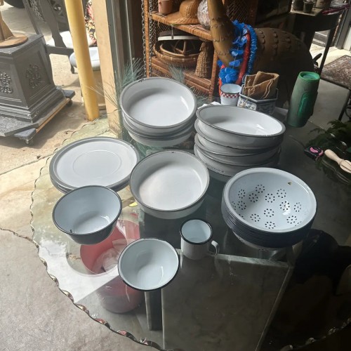 Falcon Enamelware Plates, Bowls, Strainers, Serving Dishes, Mug -Set of 30