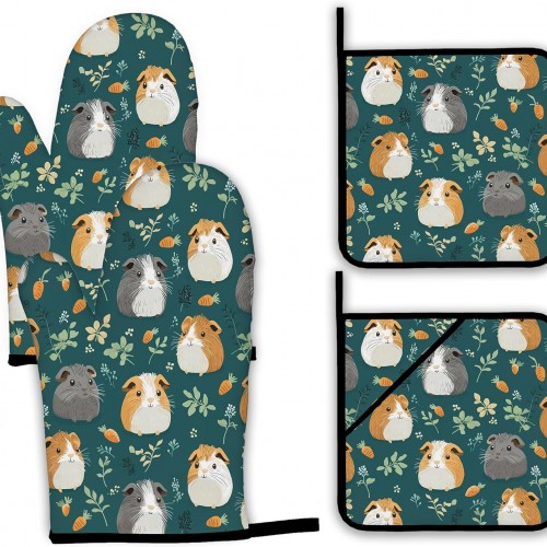 Fire Phoenix Oven Mitts and Pot Holders Set Funny Heat Resistant Microwave Oven Gloves for BBQ Baking Grilling Cooks Kitchen Decor 3 Piece