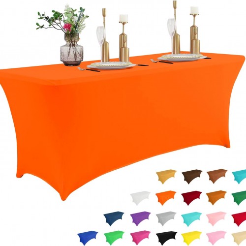 - Multi-Size Stretchy Spandex Fitted Table Covers: 90% polyester and 10% spandex, this wrinkle-free and stretchable fabric is also durable, elastic, and stain-resistant. Each set includes 10 pieces, each precisely sized to fit 6 ft rectangular folding tables ranging in length and width from 26”W x 68”L – 34”W x 76”L (ideally 30”W x 72”L), ensuring a snug and perfect fit.