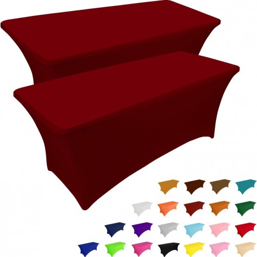 - Multi-Size Stretchy Spandex Fitted Table Covers: 90% polyester and 10% spandex, this wrinkle-free and stretchable fabric is also durable, elastic, and stain-resistant. Each set includes 6 pieces, each precisely sized to fit 6 ft rectangular folding tables ranging in length and width from 26”W x 68”L – 34”W x 76”L (ideally 30”W x 72”L), ensuring a snug and perfect fit.