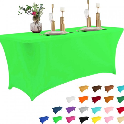 Fitted Tablecloth for 8 Foot Rectangle Tables-6 Pack Cream Elastic Outdoor Picnic Table Cover-Spandex Stretch Folding Table Cloths 8ft for Camping Dining Room Patio Kitchen Banquet Party