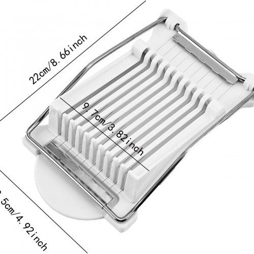 - 【Size】- Measuring 8.66in x 4.92in (22cm x 12.5cm), this food slicer design has 10 cut stainless steel wires of equal size, beautiful appearance, uniform cooking, and the thickness of the cut food is about 0.35inch.
