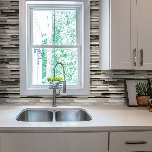 Gray White 12×12 Polished Matte Brick Glass Stone Mosaic Tile (5 pack, 4.83 sq ft/case) Full
