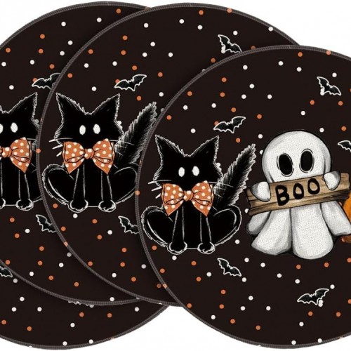 Halloween Pumpkin Placemats Set of 4, 12×18 Inch Trick Or Treat Table Mat, Washable Heat Resistant Place Mats for Kitchen Dining Table, Halloween Themed Decoration for Home-B06