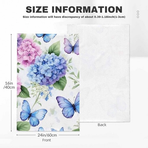 Hydrangea Waffle Kitchen Dish Cloths Butterfly Purple Blue Summer Floral Ultra Soft Absorbent Quick Drying Dish Towels 16 X 24 Inches Set of 2