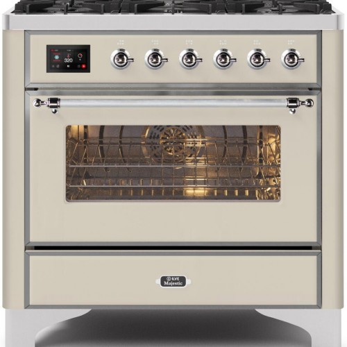 ILVE Majestic II 36″ Dual Fuel Range, Antique White, Chrome Trim UM096DNS3AWC