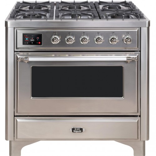 ILVE Majestic II 36″ Liquid Propane Dual Fuel Range Stainless Steel Bronze Trim UM09FDNS3SSBLP