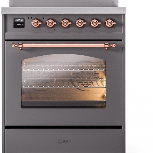 ILVE Nostalgie II 30″ Electric Range, Matte Graphite, Copper Trim UPI304NMPMGP Gray