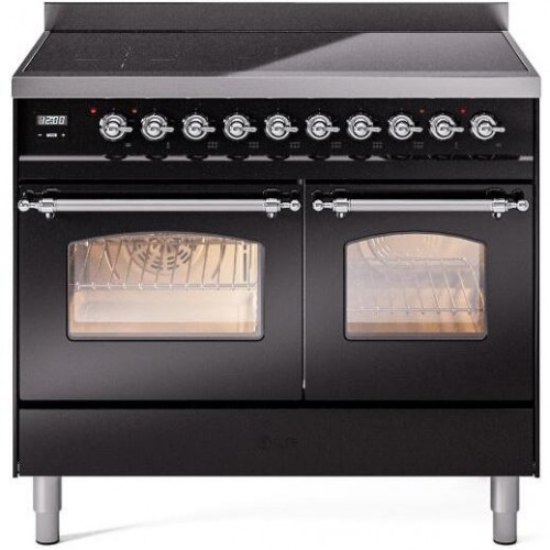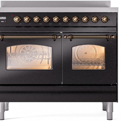 ILVE Nostalgie II 40″ Electric Range, Glossy Black, Bronze Trim UPDI406NMPBKB