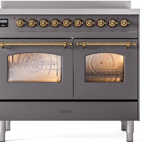 ILVE Nostalgie II 40″ Electric Range, Matte Graphite, Brass Trim UPDI406NMPMGG