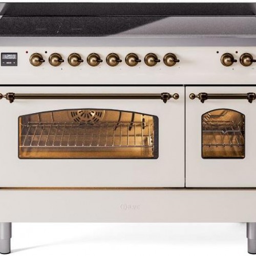 ILVE Nostalgie II 48 ” Electric Range, Antique White, Bronze Trim UPI486NMPAWB