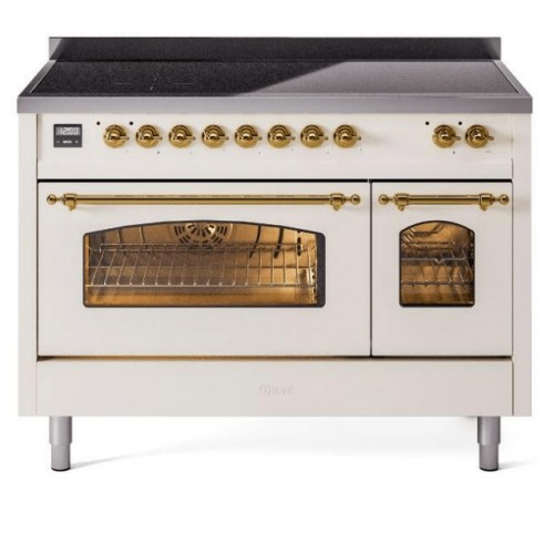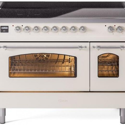 ILVE Nostalgie II 48″ Electric Range, Antique White, Chrome Trim UPI486NMPAWC