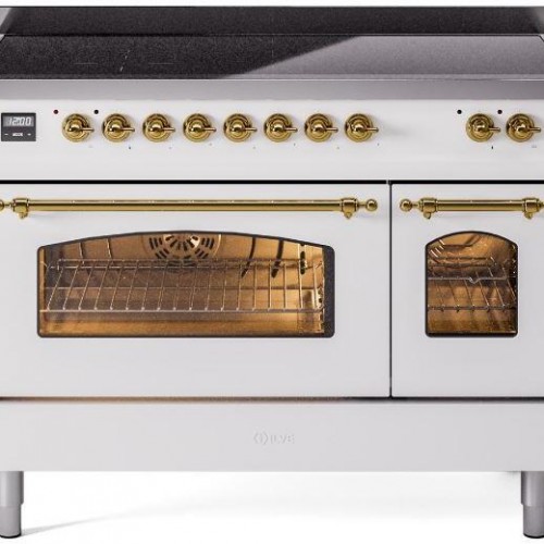 ILVE Nostalgie II 48″ Electric Range, White, Brass Trim UPI486NMPWHG