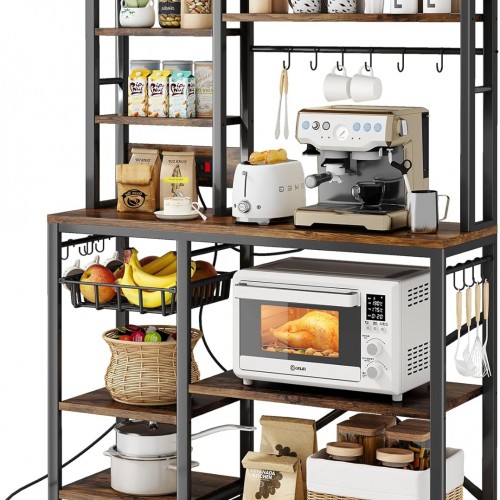 - 【Multifunctional Cabinet】The bakers rack is made from FSC-Certified wood. If you are looking for a shelf to hold your microwave oven, coffee pot, blender, spices and other kitchen items, this bakers rack with power outlet is a good choice. Perfect for kitchen, office, bathroom, study, or garage as bakers rack, microwave stand, coffee bar cabinet, garage, bookcase, or even kitchen cabinet valentines day gifts.