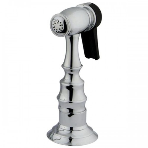 The kitchen side sprayer features a wavy makeup on the handgrip to allow easy handling when washing. The one-touch button allows water to flow through the small green nozzles at the face of the headpiece spraying a showery stream of water.