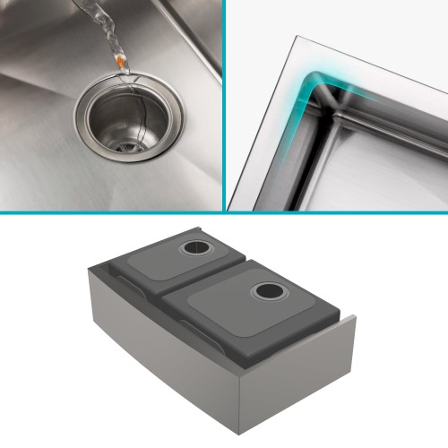 - Farmhouse Design: Installs beneath the counter for a seamless transition between counter and sink. Wiping crumbs and water puddles has never been easier