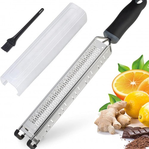 Lemon Zester, Stainless Steel Kitchen Cheese Grater, Plastic Cover Ergonomic Soft Black Handle