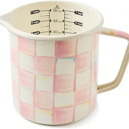 - LIQUID-MEASURING ENAMEL CUP: Dishwasher-safe measuring cups don’t get much cuter than our liquid-measuring cup. A helpful hand in the kitchen, it has a 7-cup capacity and makes cooking a breeze.