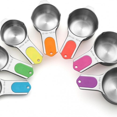 Magnetic Measuring Cups and Spoons Set – 304 Stainless Steel | Dual-sided Design | Set of 15 with Leveler | Strong N52 Magnetic Nesting Design | for Dry & Liquid Ingredients (Black)