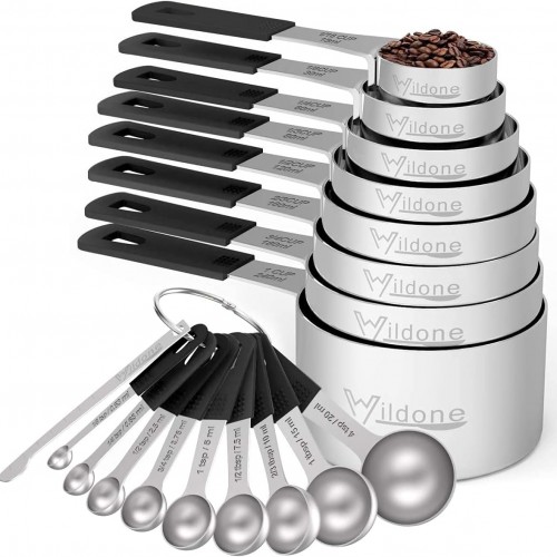 - 【Measuring Cup Set】This magnetic stainless steel measuring cups and spoons set includes 7 magnetic measuring cups, 8 magnetic measuring spoons and 1 Leveler.Many different sizes from small to large for cooking or baking, measuring dry or liquid ingredients.