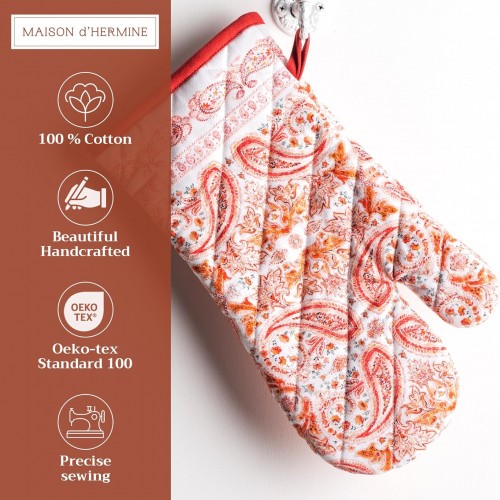 Maison d’ Hermine Oven Gloves 100% Cotton Oven Mitt 7″ x 13″ with Loop Heat Resistant, BBQ, Cooking Gloves, Baking, Grilling, Kitchen, Handling Hot Pans (Pack of 1, Orient)