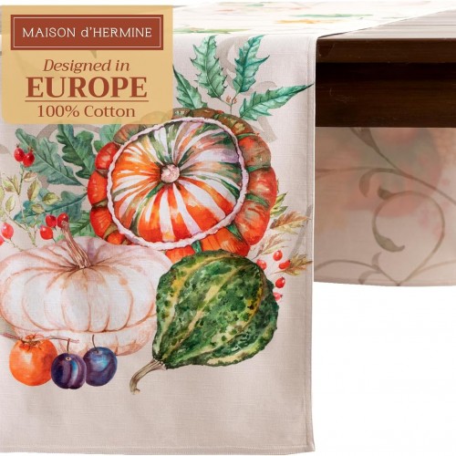 Maison d’ Hermine Table Runner 100% Cotton Double Layer Table Runners 108 inches Long for Thanksgiving Christmas Decorations Home Kitchen Dining Party Wedding (Pretty Autumn, 14.5″ x 108″)