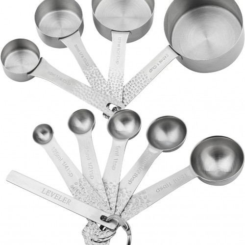 - ✱✱ Every stainless steel measuring cups and spoons set: this measuring tools set has the accurate measurements size in US and Metric engraved on the handle clearly, what will help you reduce any measuring errors for cooking or baking! for dry measuring cups and liquid measuring cups in kitchen!