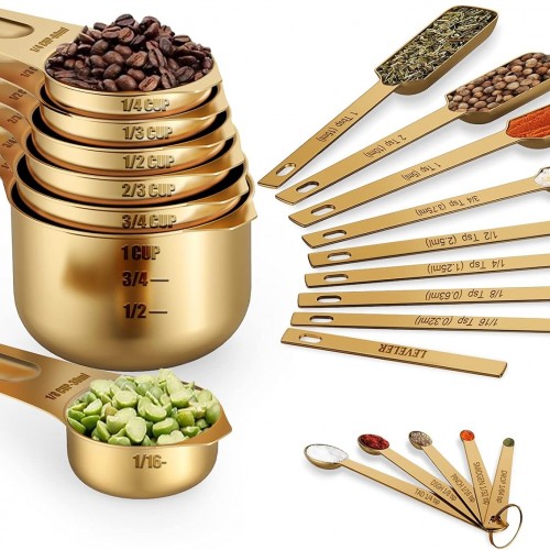 - HIGH QUALITY: This measuring cups and spoons set is made of food grade 18/0 stainless steel, rust-resistant, no toxic elements, which is ideal to use for both dry and wet ingredients
