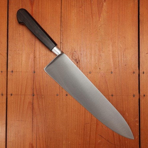 Nogent style knives are characterized by their one piece wood handles, with a pin-through tang and round steel or aluminum ferrule. They are thin and light with small bolsters. ‘Cuisine Massive’ was used to describe the style in Thiers, as Nogent was a rival knife making city.