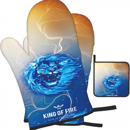- Material: Lion oven mitts and pot holders sets include 2 baking gloves and 1 pot pads. Kitchen decor oven mitts are made of heat resistant polyester fabric, soft quilted cotton lining making, non-slip, heat resistant