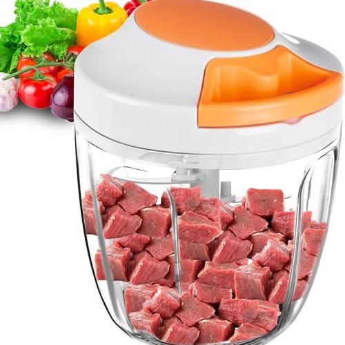 Ourokhome Manual Food Processor Vegetable Chopper, Portable Hand Pull String Garlic Mincer Onion Cutter for Veggies, Ginger, Fruits, Nuts, Herbs, etc., 500ml, Blue