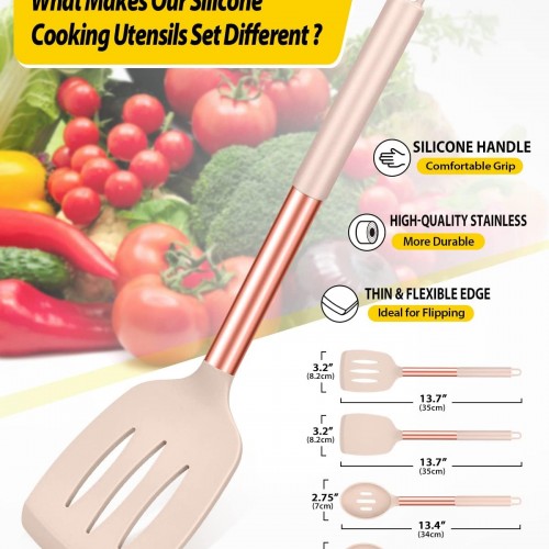 - Thoughtful Design : The good-quality 18/8 stainless steel keeps you away from the trouble of kitchen utensils rusting or breaking; This anti-scald silicone handle is not easy to conduct heat and is more comfortable to hold than traditional utensils