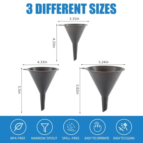 - 【You Will Receive】: We will provide you with three different sizes of DolphinSmile funnel set: small funnel 4.4 x 3.3 in; medium funnel 5.5 x 4.4 in; large kitchen funnel 5.8 x 5.2 in. Regardless of the size of the container, these three funnel can be accurately matched to meet diverse needs and avoid spills or waste.