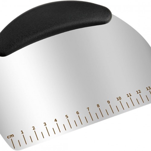 - MULTI-PURPOSE DESIGN: Stainless steel dough cutter with measurement markings for inches and centimeters, plus convenient measurement conversion chart for kitchen use
