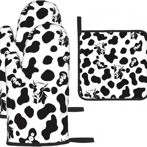 Red Cherry Oven Mitts and Pot Holders Set of 4 Silicone Cherries Kitchen Mitten Gloves and Non-Slip Potholders Set Heat Resistant Oven Gloves Hot Holders for Kitchen
