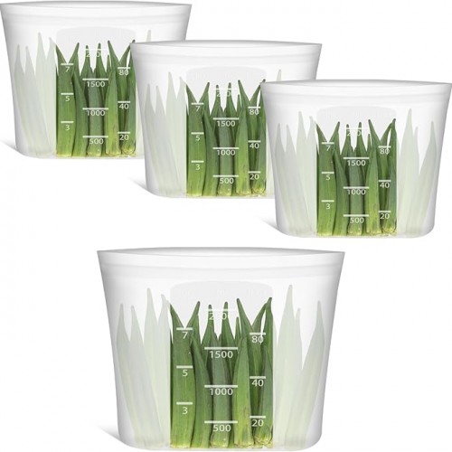 - 【THOUGHTFUL & ECONOMICAL】You’ll receive 4 Small size 33.8fl.oz/4cup/1000ml(Quart size for sandwich) and 4 Extra Small snack size 16.9fl.oz/2cup/500ml in beautiful aqua color. Reusable silicone food storage bags come with clearly volume marks in cups, milliliters and fluid ounces for easy use. Translucent aqua body easy to see what’s inside, though not in crystal clear. Plus, one silicone bag can reduce up to 300+ single-use plastic bags a year, helping to create a waste-free world
