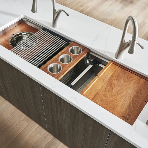Ruvati 33″ Matte Gold Double Ledge Small Radius Stainless Steel Workstation Kitchen Sink