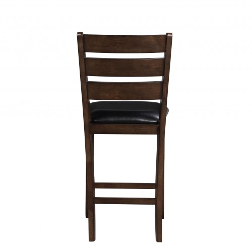 Set of 2 41″ Dark Wood Finish and Black Faux Leather Ladder Back Counter Height Chairs Counter Height Chair (Set-2), Feature: Padded Seat, Ladder Wood Back. Material: Wood, Upholstery.