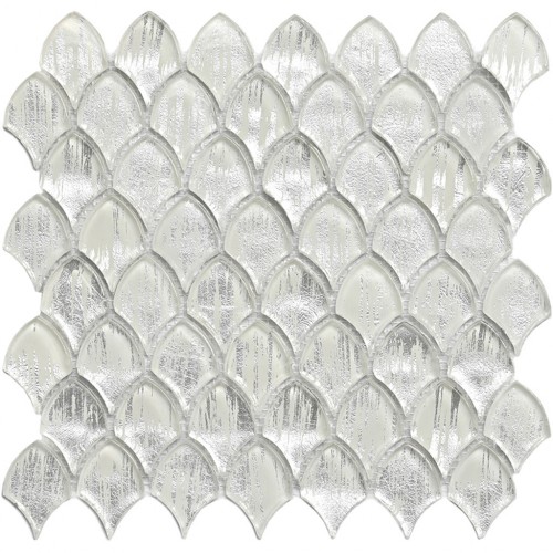 Silver Glossy Fan Fish Scale Tile – 11” x 11”