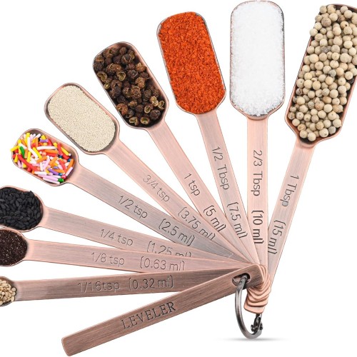 Smithcraft Copper Measuring Cups Set 7, Metric & US Stainless Steel Measuring Cups for Kitchen & Baking, Metal Measure Cups for Dry & Liquid, Nesting Measuring Cup Set with 1/8 2/3 & 3/4 Cups