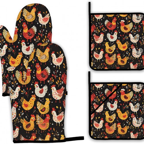 - 4-Piece Set: Includes 2 oven mitts and 2 heat-resistant pads, providing a practical and complete combination for your daily kitchen needs. Ideal for cooking, baking, grilling, and handling hot dishes.