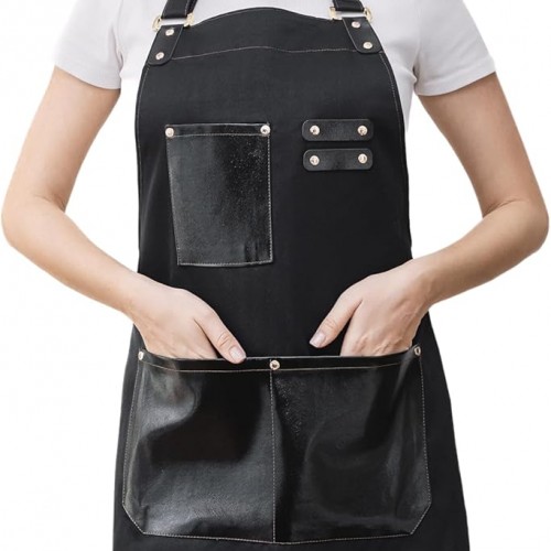 Women’s Pinafore Square Apron Baking Cooking Gardening Works Cross Back Cotton/Linen Blend Dress with 2 Pockets
